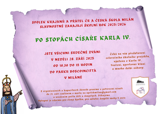Prosíme o přihlášení zájemců z řad školních dětí na email ceskaskolamilan@gmail.com, a to do 20.9. Následně vám pošleme podrobnosti k akci.